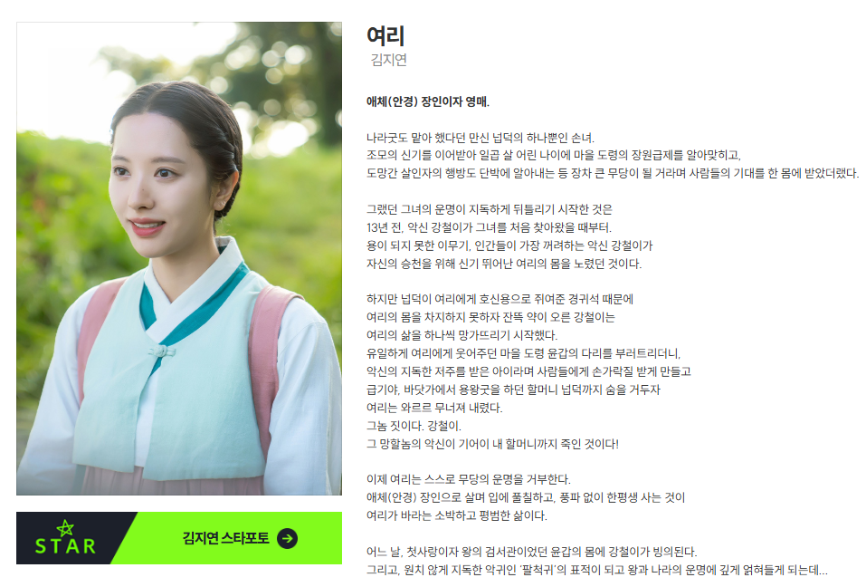 | 여리 | 김지연 | 신기를 가진 무녀 |