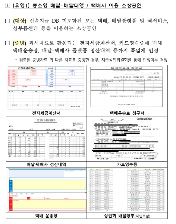 직접 배달을 하거나, 기타 플랫폼, 택배·퀵·심부름센터 이용 등 다양한 형태의 소상공인이 해당됩니다.