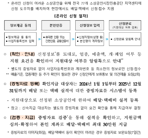 A. 소상공인배달택배비지원.kr에서 온라인으로 간편하게 신청 가능합니다.