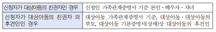 ★ 동일가구원 : 세대분리와 관계없이 가족관계증명서(및 기본증명서)기준으로 산정