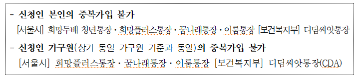 ▶ 신청인 및 가구원이 아래 유사사업에 참여 중 또는 참여 이력(만기/중도해지 등)이 있는 자