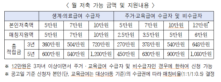 약정 주요 내용 : 저축 이행(매칭 지원액을 지급받지 위한 조건)계약