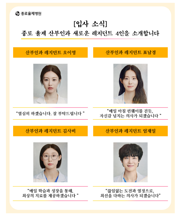 👨⚕️ 등장인물 소개 – 산부인과 1년 차 전공의 4인방