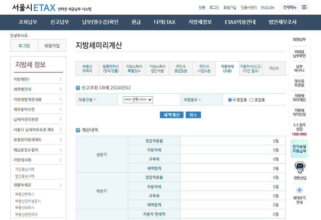 자동차세 계산기는 여러곳에서 제공을 하고 있지만 자동차세를 납부하고 조회할 수 있는 위택스로 조회를 하시는 게 좋습니다.