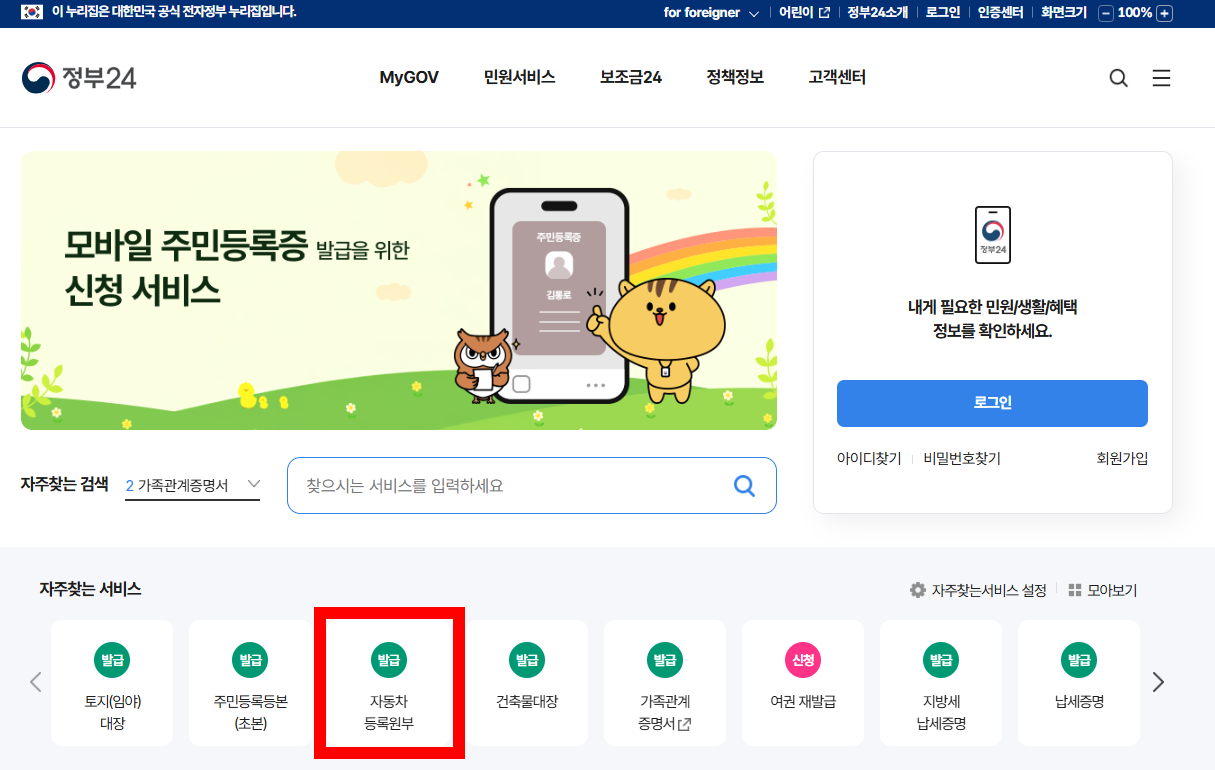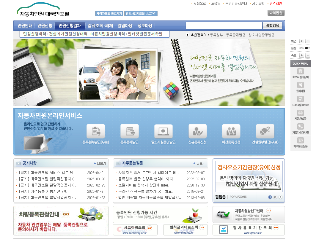 자동차민원 대국민포털 이용하기