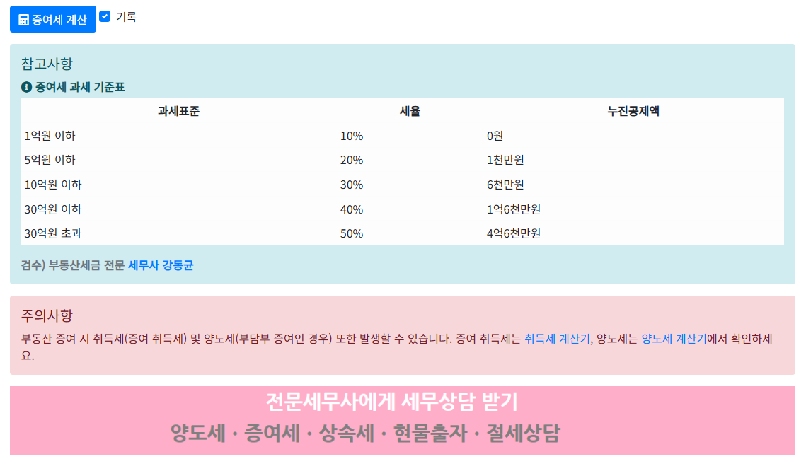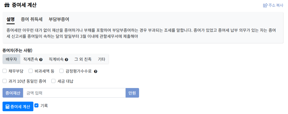 - 증여세 계산기 클릭