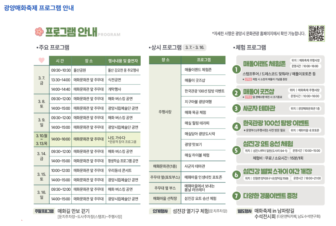 1️⃣ 2025 광양 매화축제 일정 📅