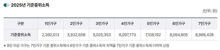2025년 기준 중위소득표