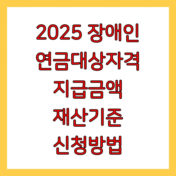 본 포스팅에서는 2025년 장애인 연금의 핵심 정보 를 심층적으로 분석 하여 제공합니다. 장애인 연금 대상자 자격, 연금 지급액 예상 및 변동 사항, 그리고 재산 기준과 소득 인정액까지, 필요한 정보들을 상세히 다룰 것입니다.