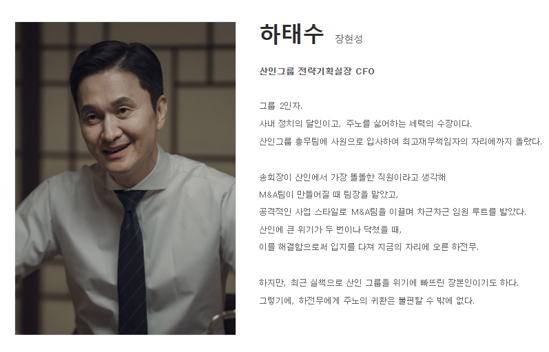🔹 하태수 (장현성) - 산인그룹 CFO