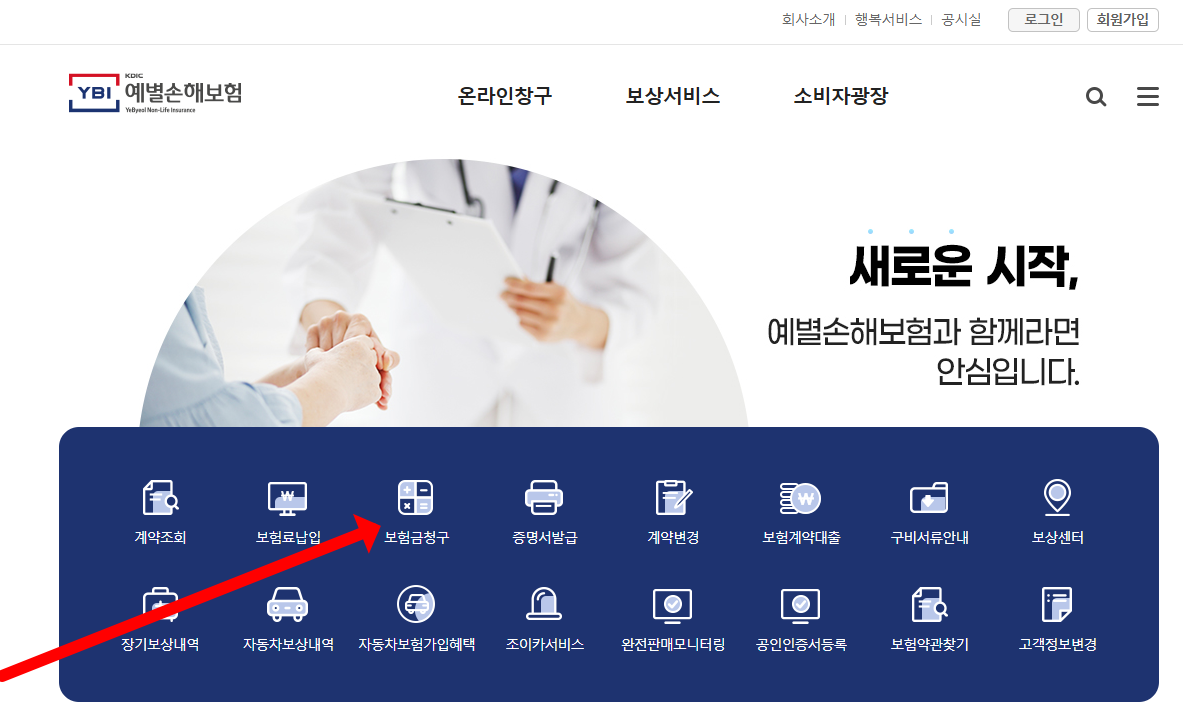 - 홈페이지 접속 → [보험금 청구 메뉴] 선택