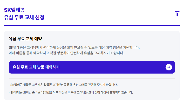 - 상담원 연결 후 "유심 교체 예약" 요청